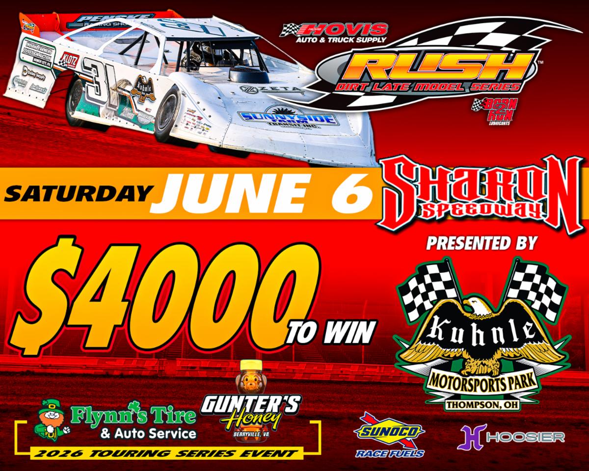 Monday January 12th... HOVIS RUSH LATE MODELS TO RETURN TO SHARON JUNE 6 AFTER A 4-YEAR ABSENCE FOR A FLYNN'S TIRE/GUNTER'S HONEY TOUR EVENT PRESENTED BY KUHNLE MOTORSPORTS PARK