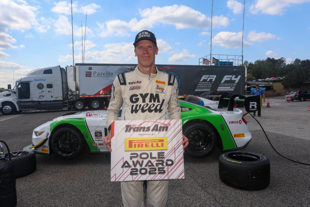 Saturday October 18th...Practice and qualifying have concluded for the Trans Am Series presented by Pirelli’s inaugural race at Barber Motorsports Park. Chris Dyson drove his No. 16 GYM WEED Ford Mustang to a blazing-fast time of 1:20.674, claiming the pole award for tomorrow’s race
