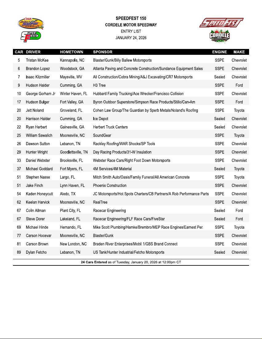 With stacked entry lists, national-level talent, and the spotlight once again on Cordele Motor Speedway, SpeedFest is ready to kick off the racing season in a big way.