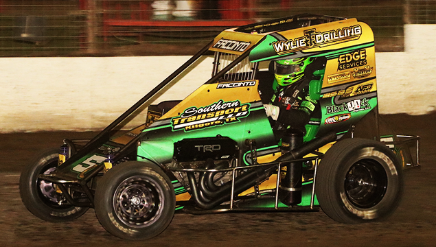 Flashing into the lead by using a late-race restart, Michael Faccinto would not waver from a smooth and speedy low line hustle to capture his first career league feature victory by leading the final six laps of the high-paying event as Daison Pursley held on to finish runner-up, as Gavin Miller recovered nicely to round out the podium placements.