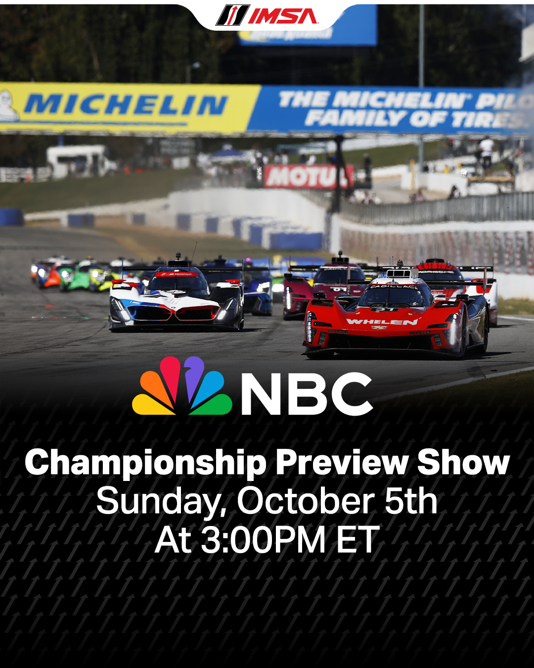 Thursday October 2nd...NBC Sports will preview the 2025 IMSA WeatherTech SportsCar Championship season finale, Motul Petit Le Mans, with a special one-hour show on Sunday, Oct. 5 at 3 p.m. ET on NBC and Peacock.