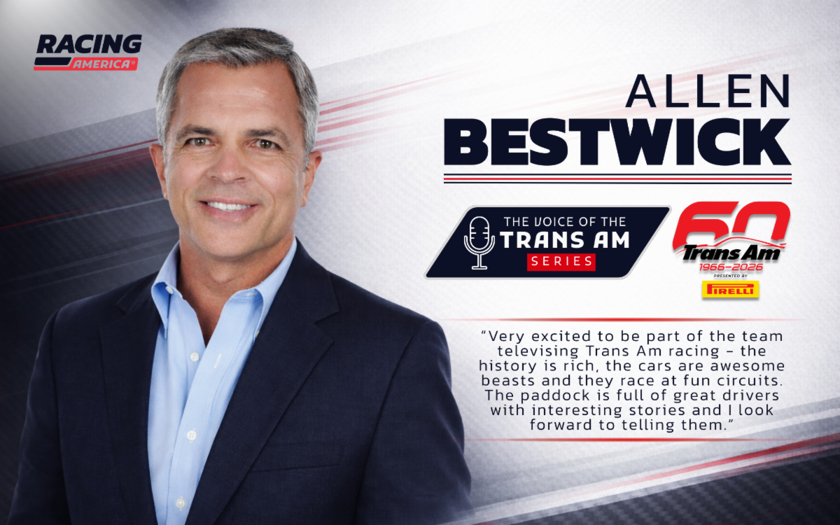 Tuesday January 20th...The Trans Am Series presented by Pirelli is thrilled to announce that award-winning veteran sportscaster Allen Bestwick will serve as lead commentator for Trans Am broadcasts in 2026.