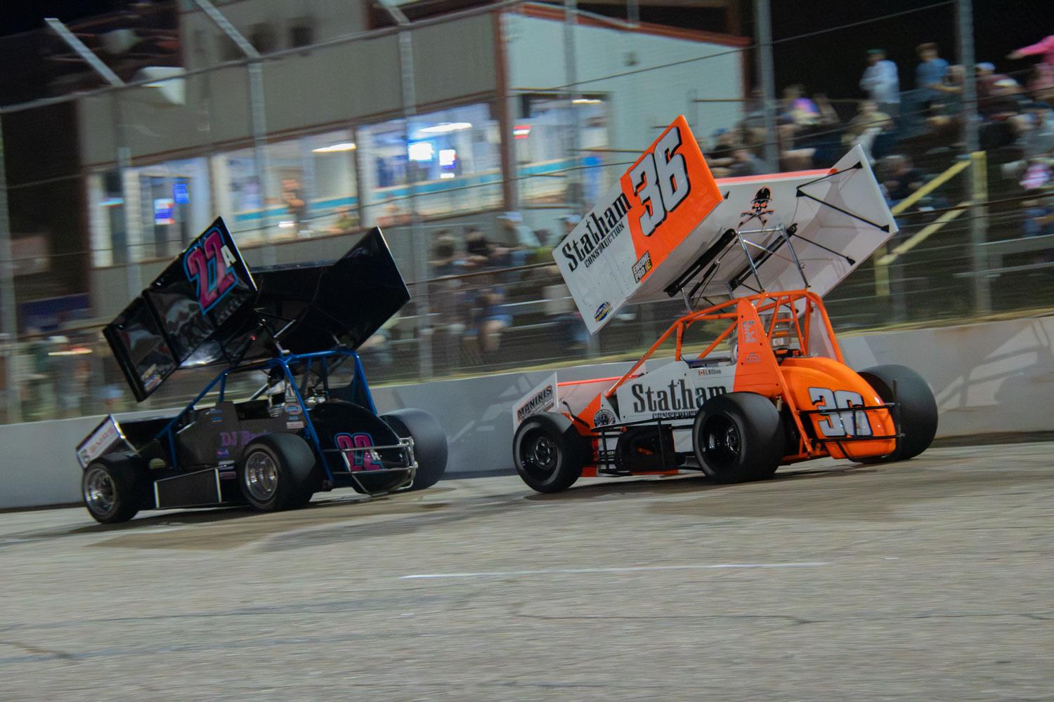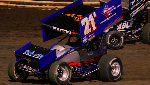 Brady Bacon in Thrilling Win with POWRi 410 Outlaw Sprints at Lee County Speedway’s Hawkeye Nationals