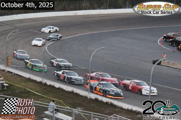 Shenandoah, Virginia (October 7, 2025) – The points finale for the Super Cup Stock Car Series this past Saturday night was not without its intense moments.  Since the Veterans Classic in late August was not able to be concluded in its entirety, 10 teams returned to Shenandoah Speedway with the first of twin 35-lap races serving as “part two” of the annual event.