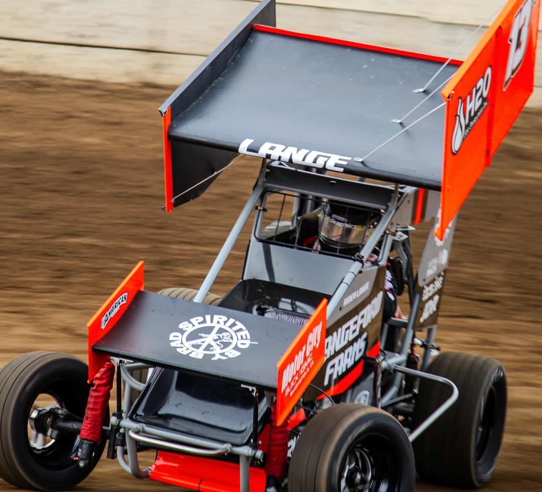 On lap three, Legend—fresh off his 360 Sprint Car debut at Ventura—pulled even with Lange once more.  However, Lange maintained the top spot by a narrow margin at the end of the lap.   Legend left veteran Michnowicz a tiny bit of daylight off turn two on lap four and the wily veteran slipped under him exiting turn two to snatch second. By lap seven, Lange stretched his lead to nearly ten car lengths before slower traffic came into play.