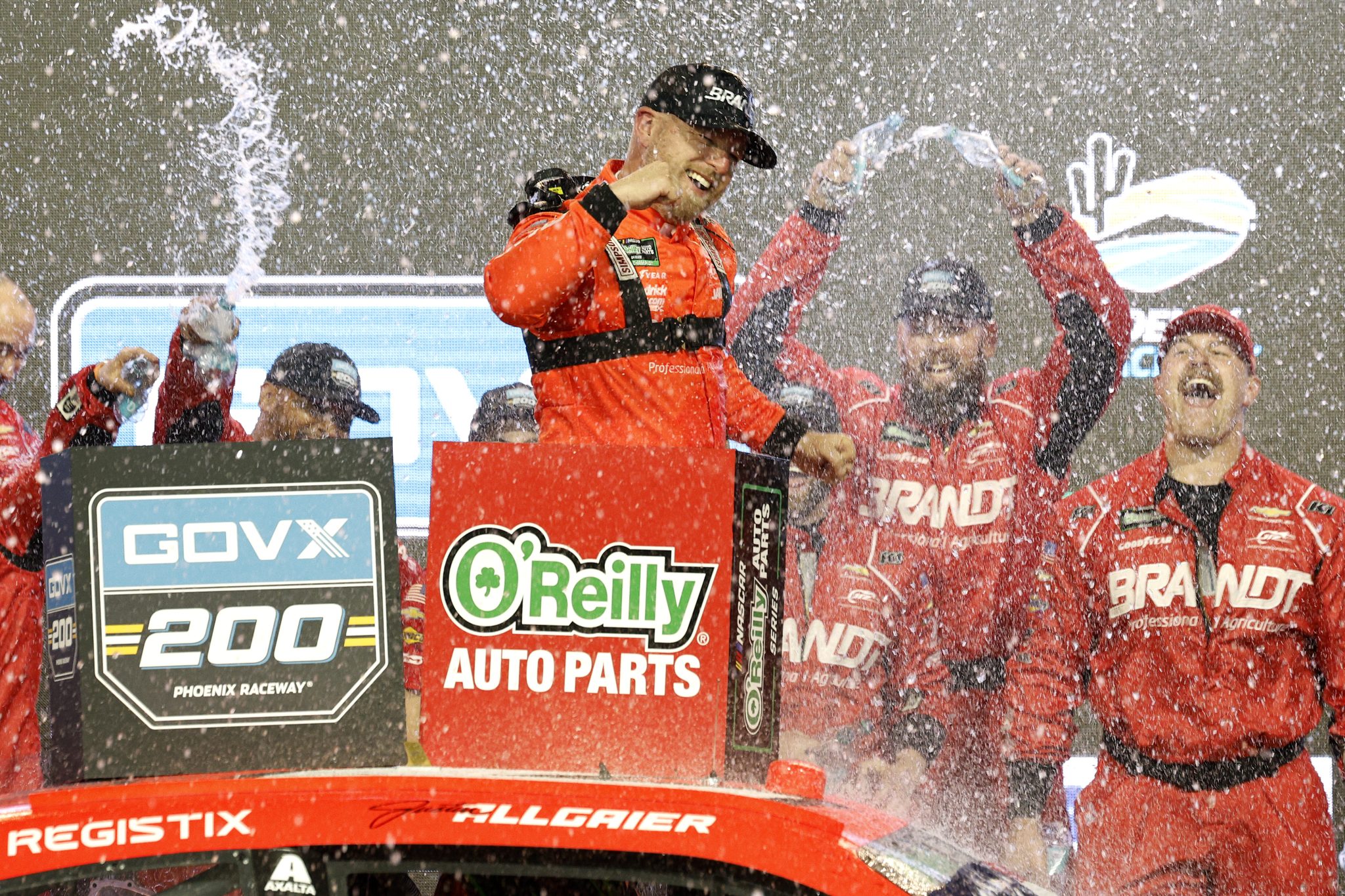 PHOENIX, Ariz. - JR Motorsports’ driver Justin Allgaier pushed forward when it mattered most, his No. 7 Chevrolet leading only the last 11 laps of Saturday night’s GOVX 200 at Phoenix Raceway to claim his third win at the one-mile oval and take over the championship lead in NASCAR’s O’Reilly Auto Parts Series.