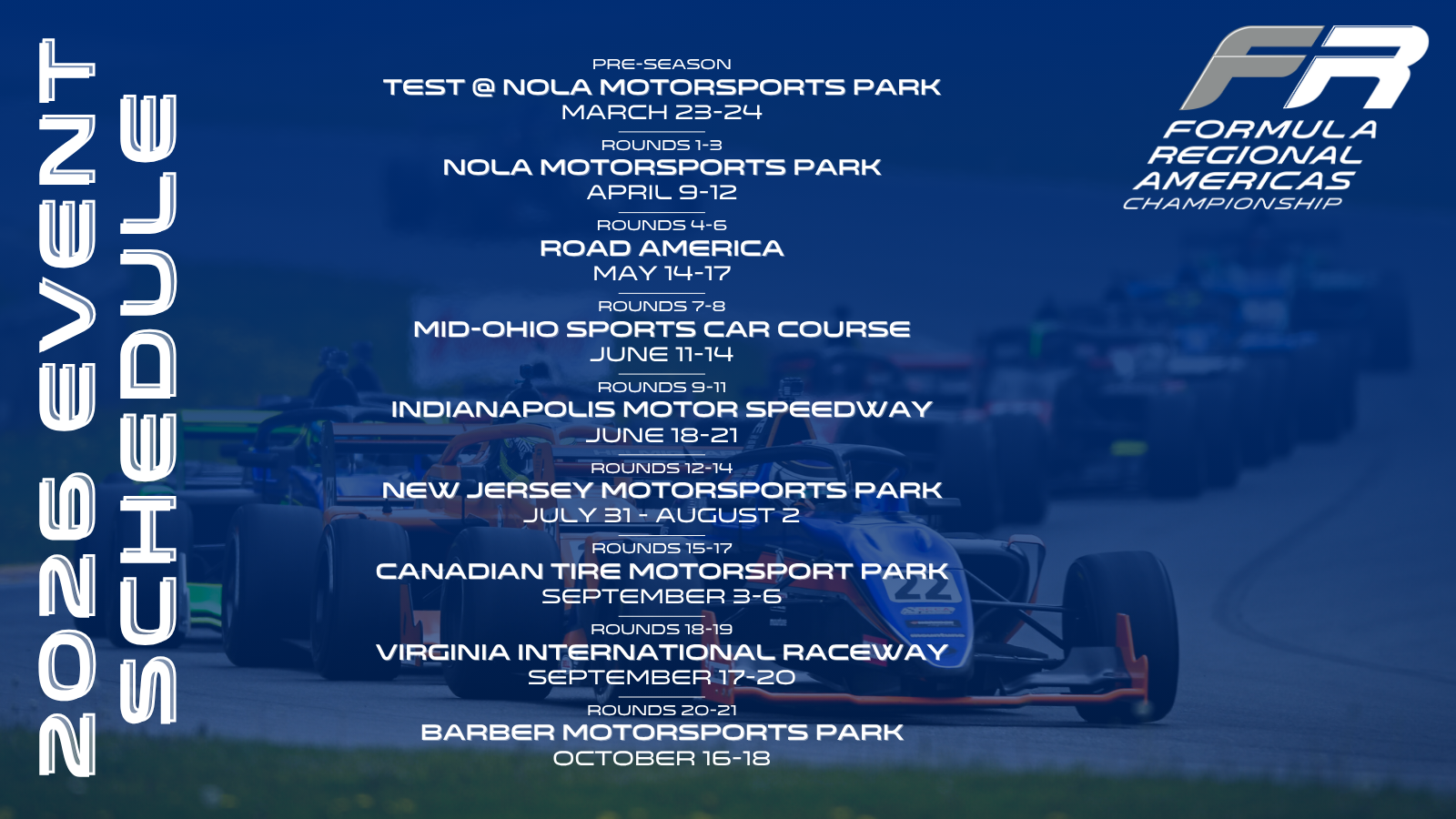 The 2026 season will open in New Orleans, with NOLA Motorsports Park serving as the backdrop for both a Pre-Season Test and the NOLA SpeedTour weekend. Then, it’s off to Elkhart Lake, Wis., and the famed Road America, where all three championships will host their second event. As summer heats up, everyone will head to Mid-Ohio Sports Car Course. After that, FR Americas will race across the yard of bricks on the IMS Road Course at Indianapolis Motor Speedway, as they contest their solo back-to-back run. Then, the three championships will reunite at New Jersey Motorsports Park, before FR Americas and F4 U.S. head north of the border to take on Canadian Tire Motorsport Park over Labor Day weekend. From there, all three series are off to VIRginia International Raceway, before closing out the year and crowning the 2026 champions at Barber Motorsports Park in mid-October.