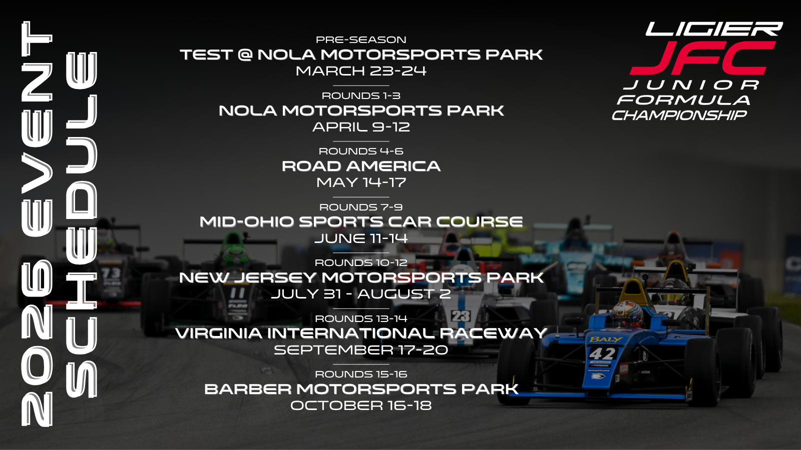 CHARLOTTE (October 1, 2025) – Formula Regional Americas Championship (FR Americas), Formula 4 United States Championship (F4 U.S.) and Ligier Junior Formula Championship (Ligier JFC) have unveiled their 2026 race schedules, mixing some of the most iconic circuits in North America with some of the best training grounds for young talent. Serving as America’s Road to F1, each championship’s calendar will focus on driver development and competition, as FR Americas contests a total of 21 rounds at eight tracks, F4 U.S. provides drivers 18 rounds at seven tracks, and Ligier JFC offers 16 rounds at six tracks.