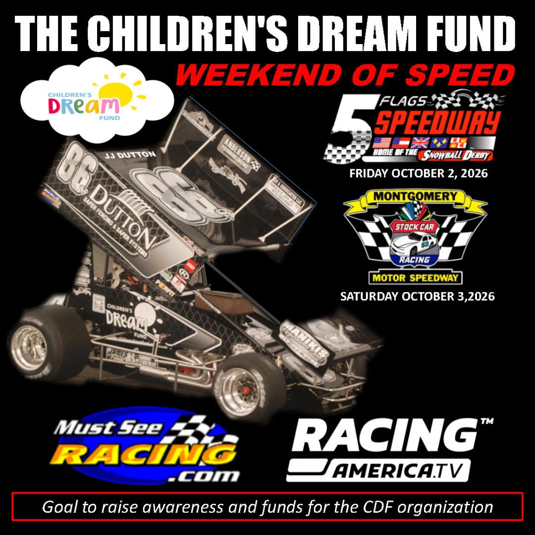 January 22, 2026 – Event organizer JJ Dutton today announced that the popular ‘Children’s Dream Fund Weekend of Speed’ will be back for the third consecutive season in 2026. The popular winged asphalt sprint car race will return as a two-day full points paying Must See Racing Sprint Series Presented by Perfit-Parts.Com events.