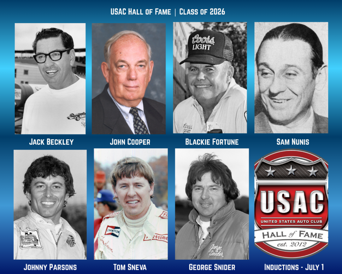 Speedway, Indiana (January 27, 2026)………Jack Beckley, John Cooper, Blackie Fortune, Sam Nunis, Johnny Parsons, Tom Sneva and George Snider are the newest inductees into the USAC Hall of Fame, class of 2026.