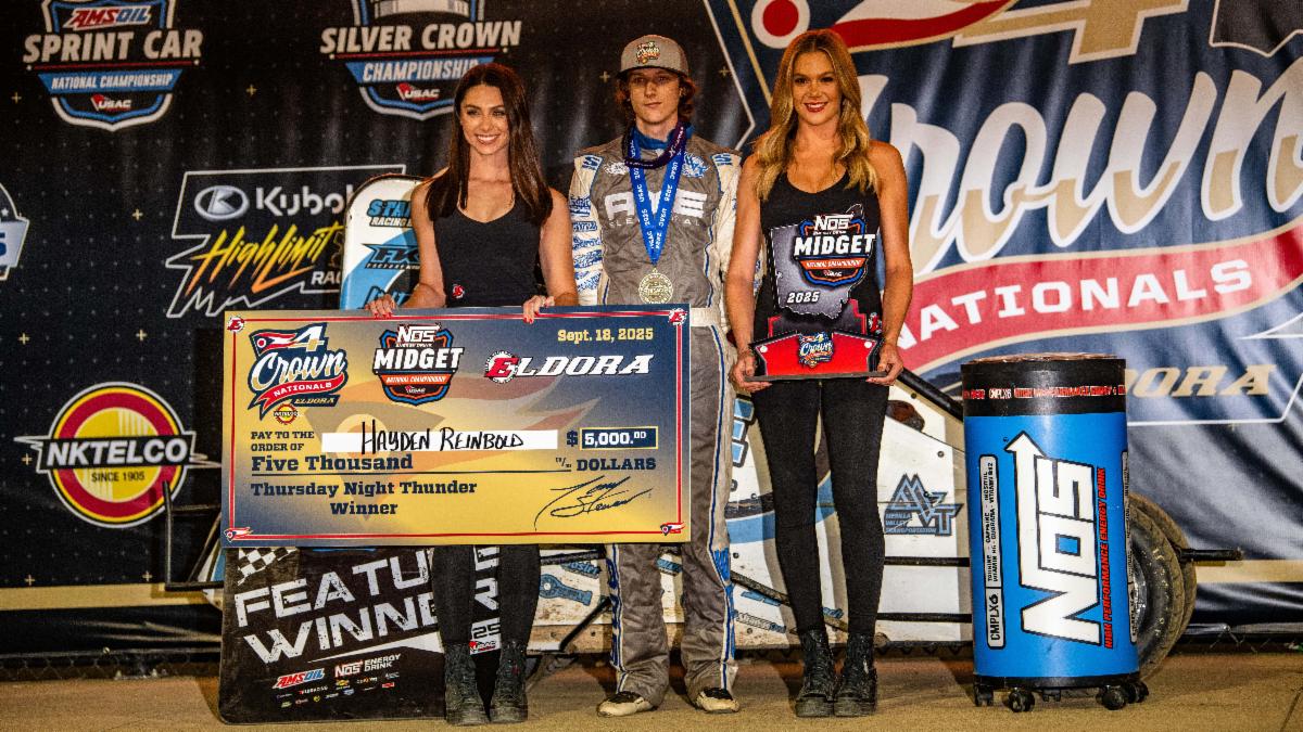 Rossburg, Ohio (September 18, 2025)………When Hayden Reinbold set quick time for the first time in his USAC NOS Energy Drink Midget National Championship career during Thursday night’s Honest Abe Roofing Qualifying session, that particular feat made everyone on the grounds of Rossburg, Ohio’s Eldora Speedway stand up and take notice.