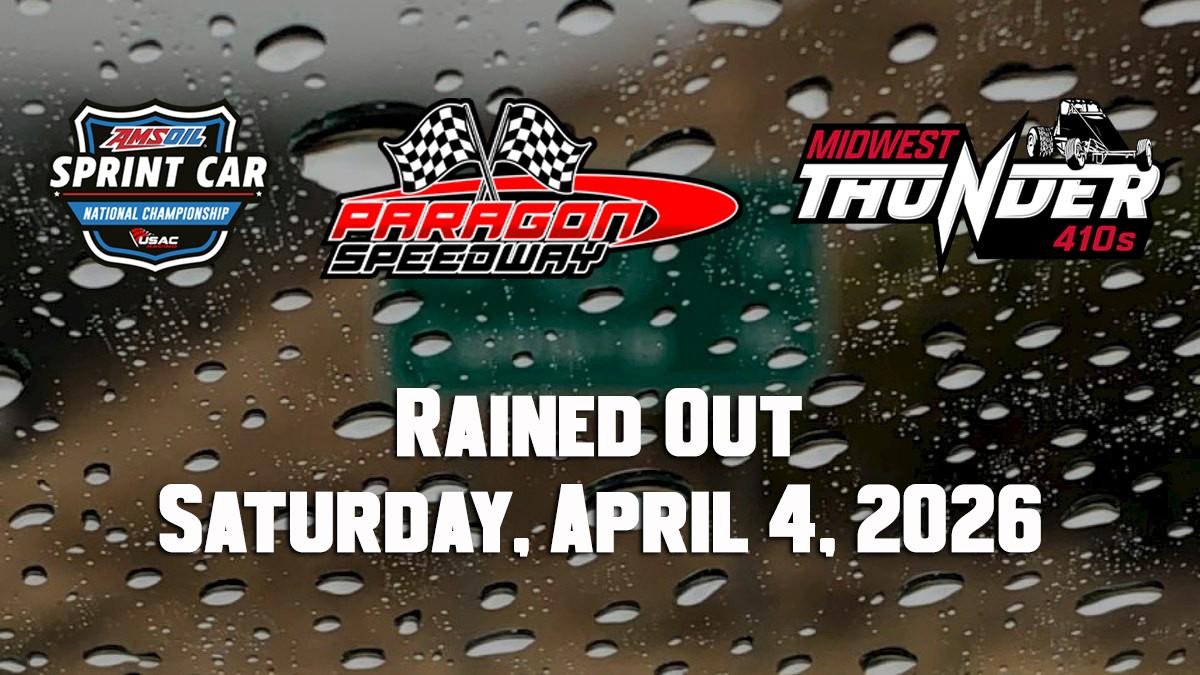 Saturday April 4th..This Saturday’s April 4 USAC AMSOIL Sprint Car National Championship event at Indiana’s Paragon Speedway has been rained out.